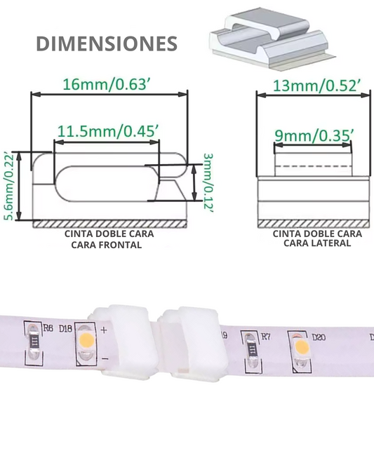 Base de plástico para tira LED | Grapa adherible | Clip de montaje con cinta doble cara para superficies planas para tira LED | Proximamente descontinuado