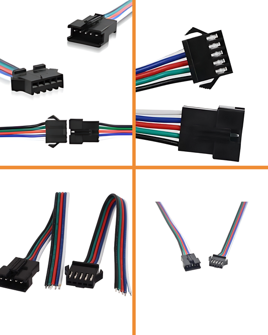 Arnés Conector RGB 4 pines Macho - Hembra Universal JST | Conector rápido tira LED RGB 4 cables