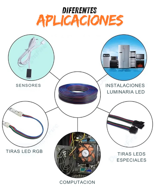 Cable RGB calibre 26AWG 4 hilos | Cable RGB 4 vías para tira LED RGB