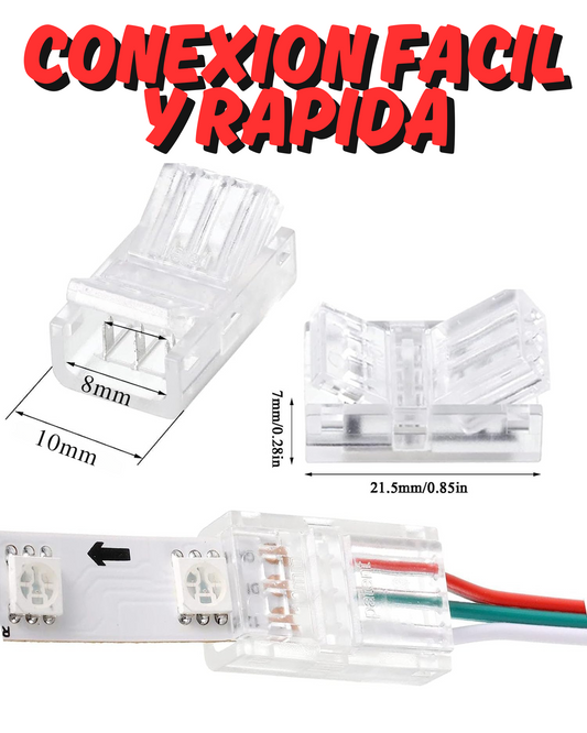 Conector transparente para Tira LED 10mm | Cople empalme para Tira de LED