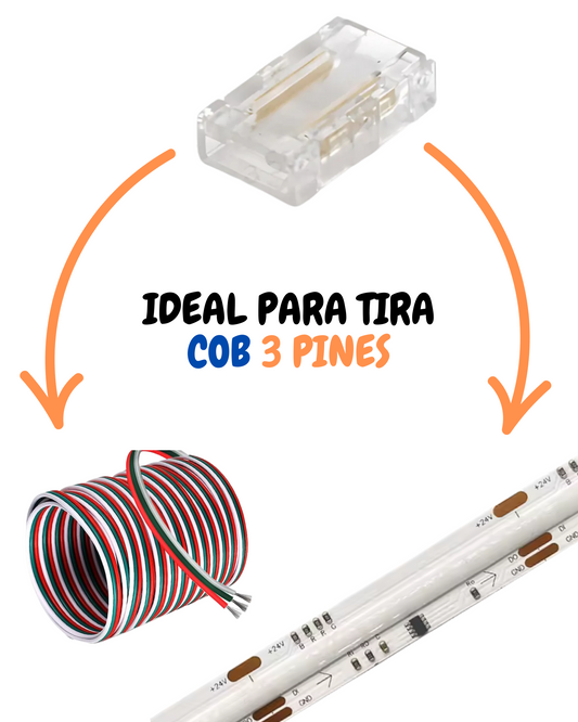 Conector transparente para tira LED COB 8mm | Cople empalme para Tira LED 3 pines COB