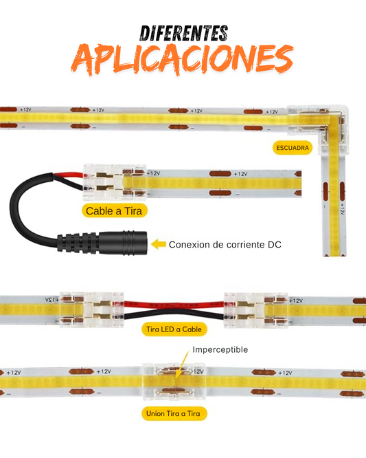 Conector transparente para Tira LED 10mm | Cople empalme para Tira de LED