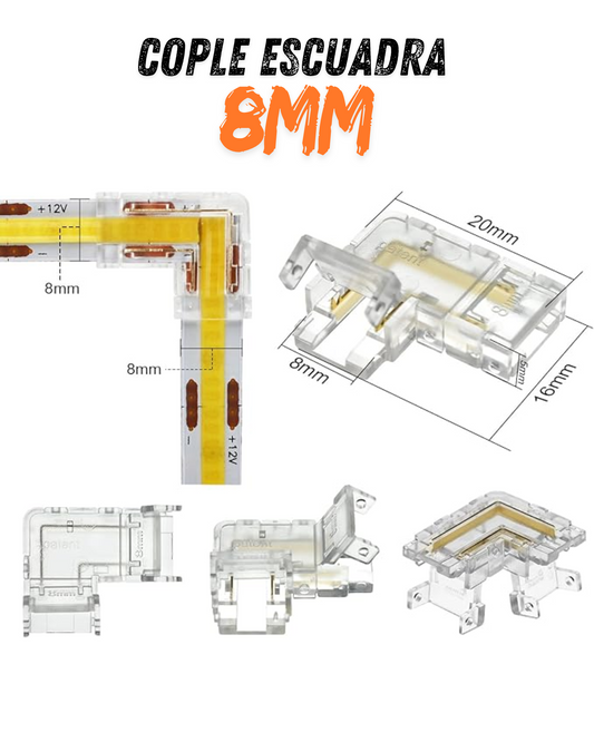 Conector transparente para Tira LED 8mm | Cople empalme para Tira de LED 5050
