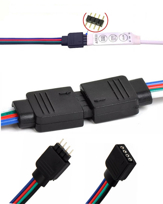 Conector para tira de LED RGB multicolor | Cable conector macho - hembra RGB 4 cables
