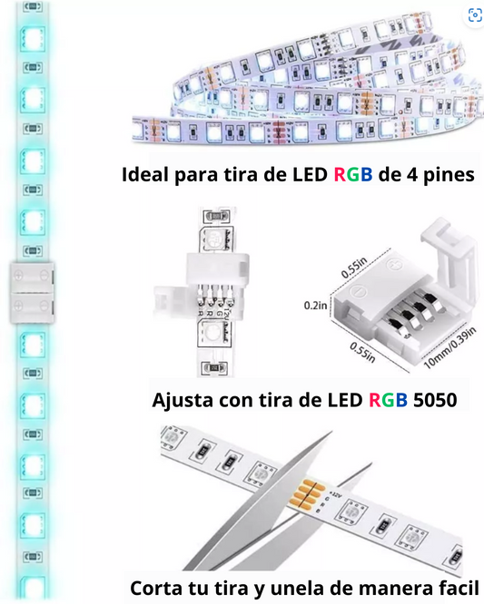 Cople para tira de LED RGB multicolor | Cople tipo X T L | Empalme tira led