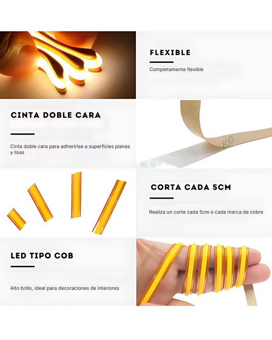 Tira LED tipo COB 252D 24V DC | Rollo 5 metros tira Luz LED para decoración de interioresPrecio habitual $ 150.00 MXNPrecio habitualPrecio unitario por-