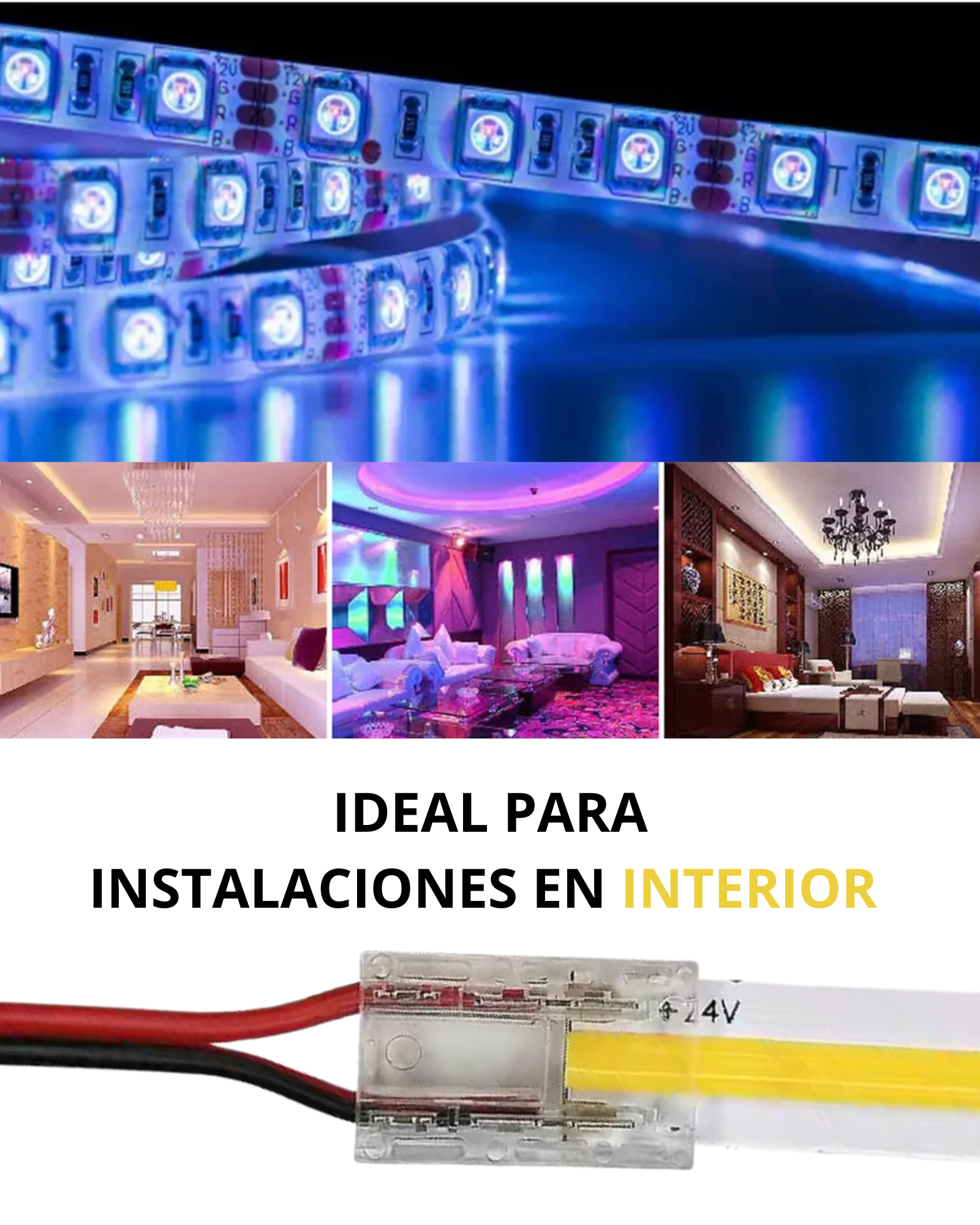 - Ideal para tira LED COB: Ajuste perfecto y conexión segura.