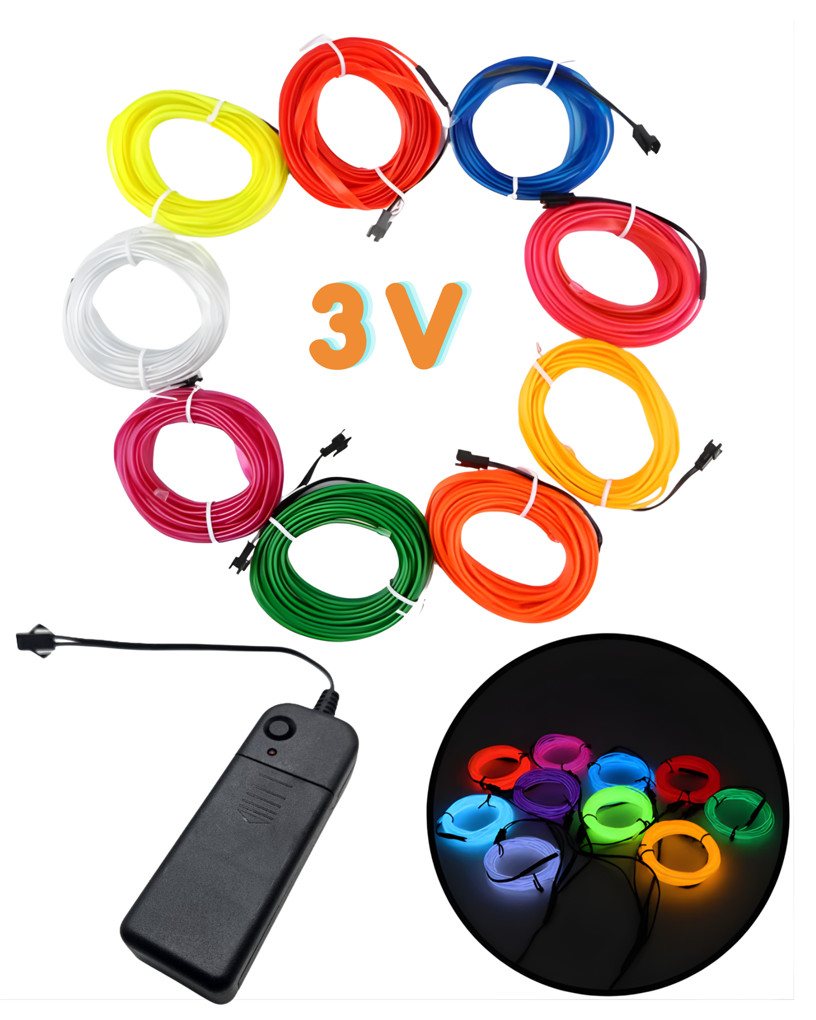 Hilo neón 3 metros | Hilo luminoso tipo neón decorativo 3V | Próximamente descontinuado