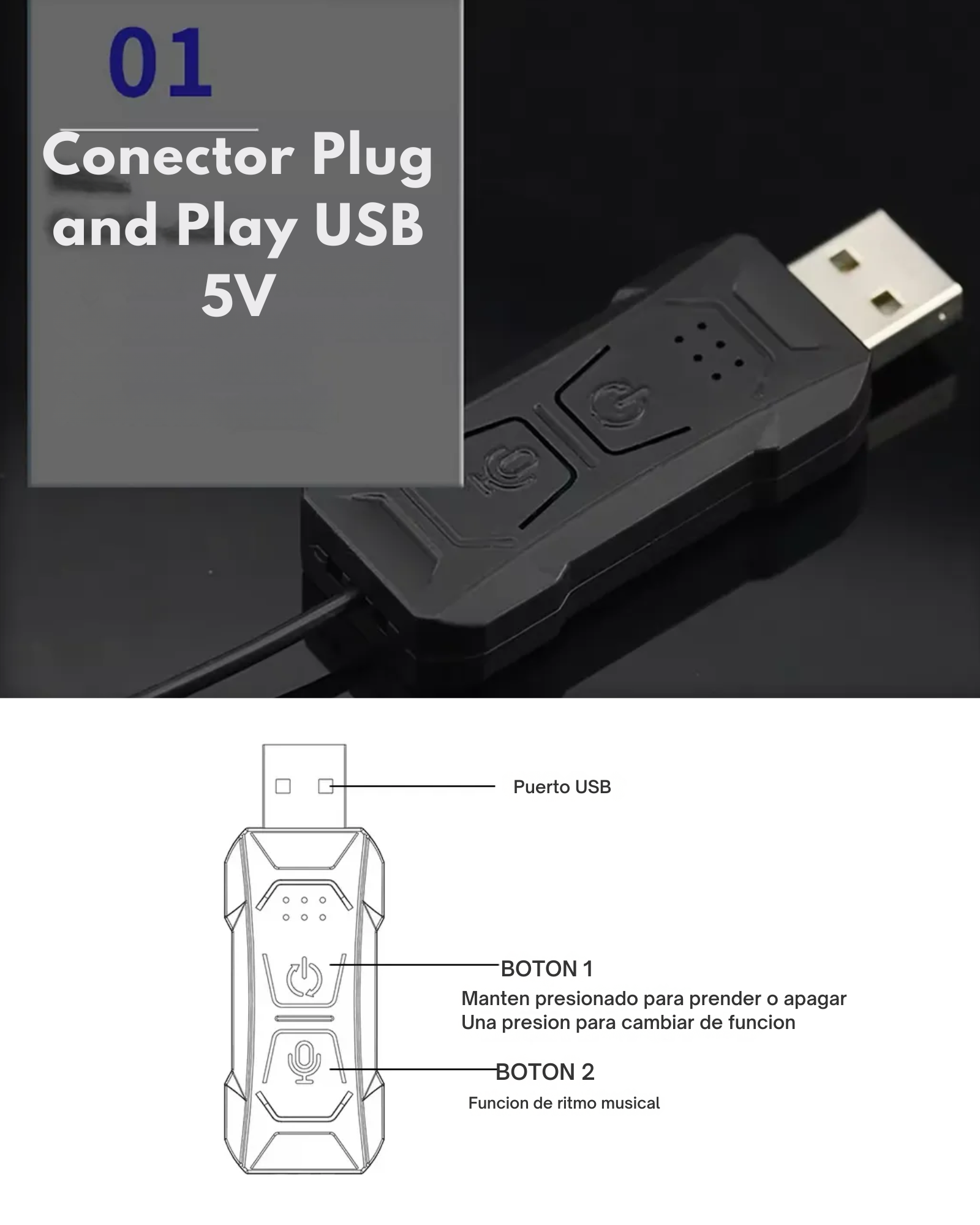 ⚡ Voltaje de trabajo: 5V DC puerto USB (ideal para uso automotriz)